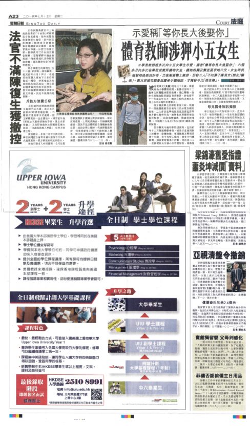 Jul172014 Press Room – 17th Jul 2014 PressBy uiuJuly 17, 2014星島日報 Sing Tao Daily 17th Jul 2014 Details